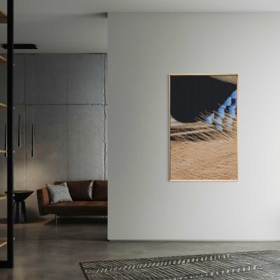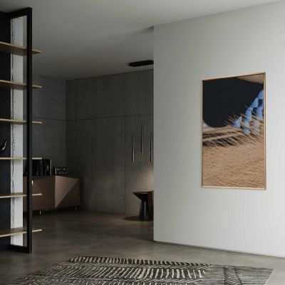Der Eichelhäher (im Siegerland „Magolves“ genannt) – oft gehört, nicht so häufig gesehen. Laut, wachsam, ein Hüter des Waldes und zugleich Teil eines empfindlichen Geflechts aus Arten, Rückzugsorten und Abhängigkeiten. In dieser Arbeit rückt nicht der Vogel als Ganzes ins Bild, sondern sein Gefieder: eine Nahaufnahme, die Nähe suggeriert und zugleich Distanz schafft. Farbe, Struktur und Muster stehen stellvertretend für ein Lebewesen, das mehr ist als ein schöner Anblick – nämlich Teil eines komplexen Lebensraums, der zunehmend unter Druck gerät.