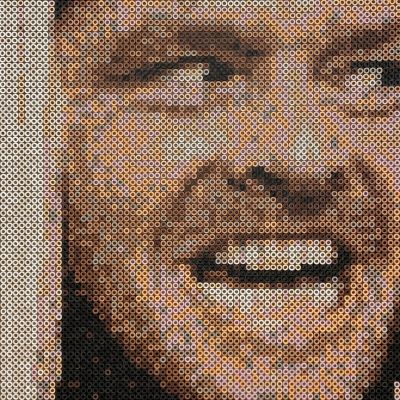 Ich wollte diesen Moment nicht nur als Schockbild darstellen, sondern die visuelle Intensität in die reduzierte Sprache der Pixel übertragen. Die Grobheit der Bügelperlen bricht das Motiv auf – Details verschwinden, aber der Ausdruck bleibt. Die rohe Energie von Jacks Gesicht wirkt dadurch beinahe ikonografisch.