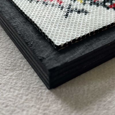 | Material: | Bügelperlen und Permanent-Marker auf Ölbasis auf Holzplatte |
